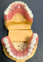 WM China hammaslaboratorio koko kaaren restaurointi CADCAM titaani Ibar paikoillaan lokerilla ja irrotettava hammasproteesin päällä
